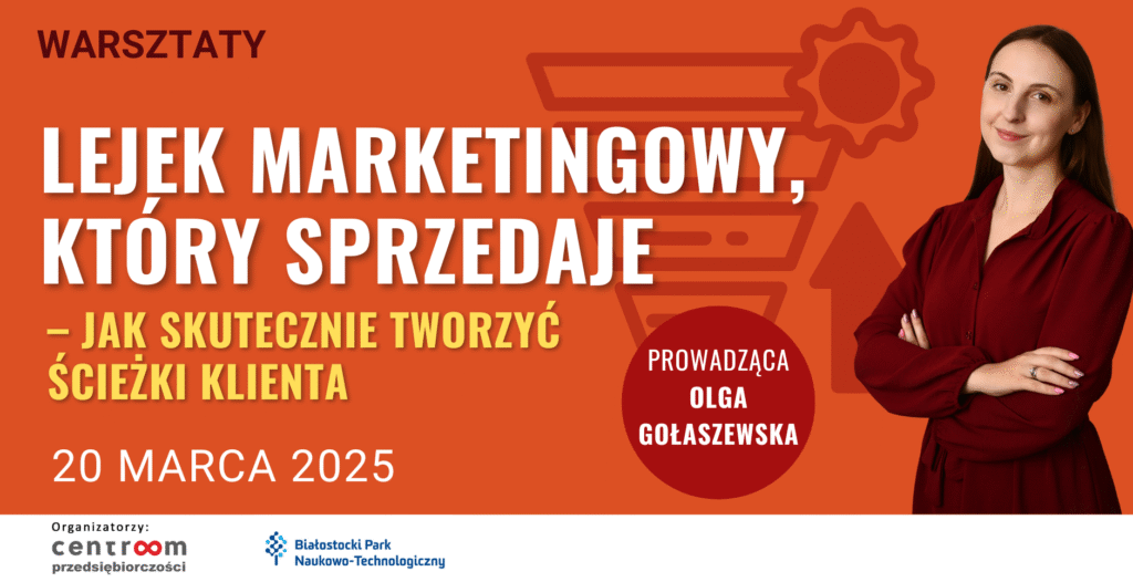W dzisiejszych czasach skuteczna sprzedaż w Internecie to nie kwestia przypadku – to wynik dobrze przemyślanej ścieżki, którą przechodzi klient. Dobrze zaprojektowany lejek marketingowy i sprzedażowy pomaga firmom nie tylko przyciągnąć uwagę odbiorców, ale także sprawnie poprowadzić ich przez proces zakupu, dostosowując go do ich potrzeb. Z okazji 50. jubileuszowego szkolenia z cyklu „Centroom Przedsiębiorczości” w miejskim biurze coworkingowym Centroom odbędą się dwa warsztaty, podczas których zgłębione zostaną te tematy.