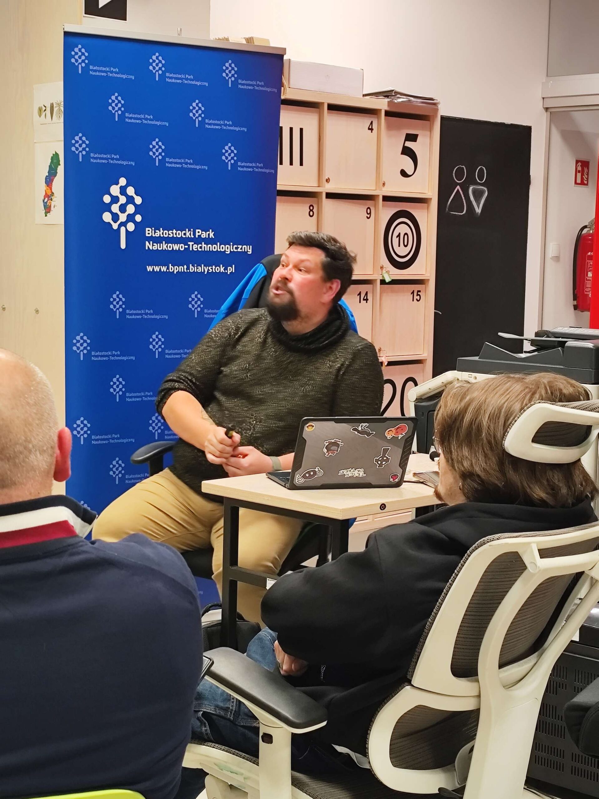 Podczas kolejnego spotkania, które odbyło się 28.11.2024 r. w biurze coworkingowym Centroom, uczestnicy mieli okazję wysłuchać Kamila Porembińskiego, specjalisty ds. cyberbezpieczeństwa. Tematem szkolenia były zagrożenia związane z cyberatakami oraz praktyczne wskazówki dotyczące ochrony danych.
