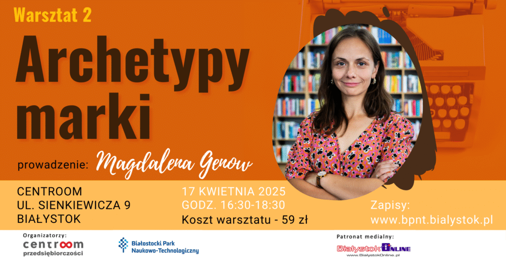 Twoja marka to nie tylko logo i kolory – to emocje, historia i wartości, które tworzą jej unikalne DNA. Już 16 i 17 kwietnia w biurze coworkingowym Centroom odbędą się dwa warsztaty: „Podróż do DNA marki” oraz „Archetypy marki”, które pomogą Ci zajrzeć w głąb swojej marki, odkryć jej osobowość i nauczyć się mówić o niej w sposób, który zostaje w głowie – i sercu – odbiorcy. To okazja, by zbudować silniejsze fundamenty swojej komunikacji i wyróżnić się autentycznością.