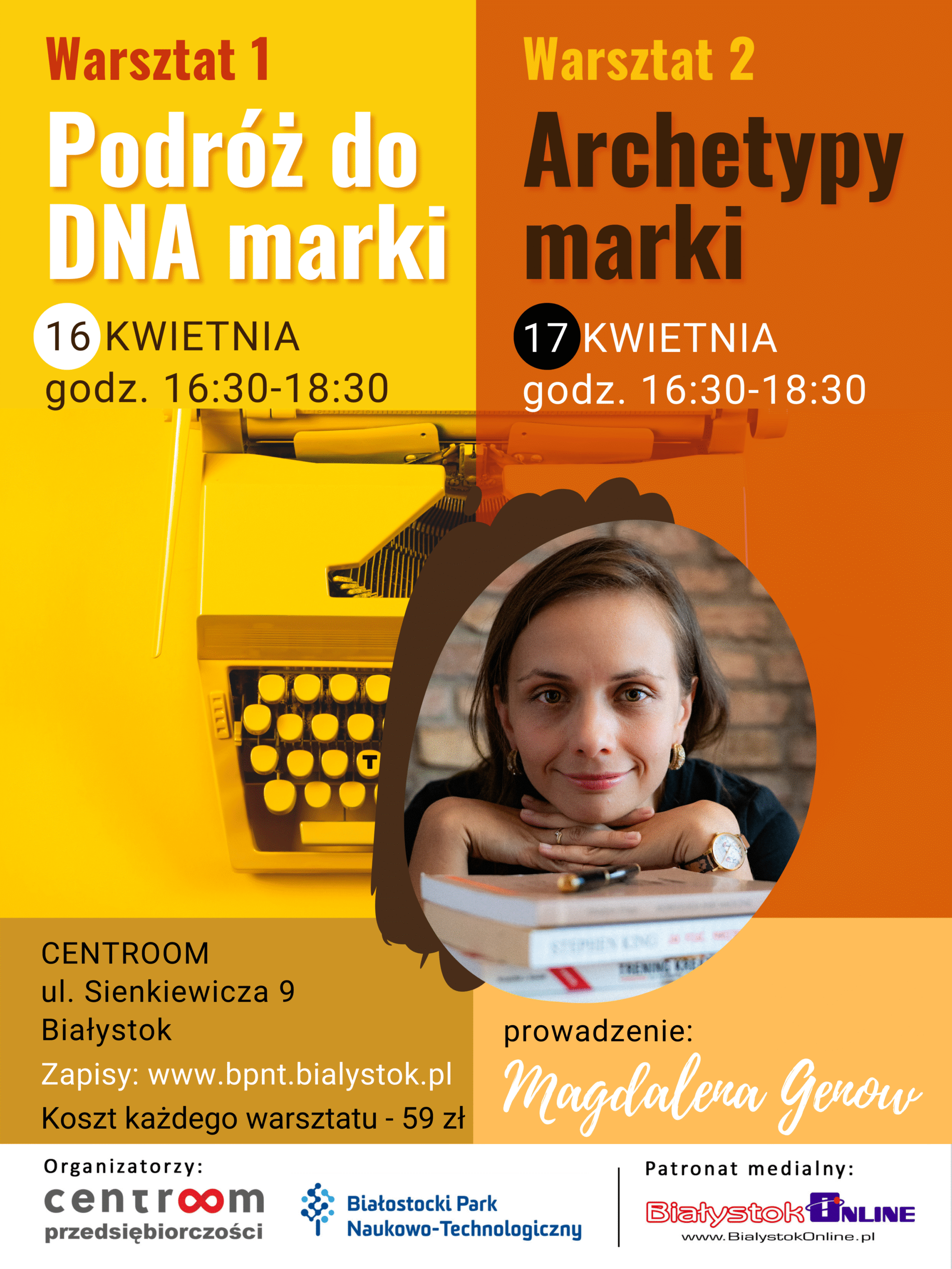 Białostocki Park Naukowo Technologiczny i biuro coworkingowe Cenroom zapraszają na dwa wyjątkowe warsztaty, które pomogą Ci nie tylko odpowiedzieć na te pytania, ale przede wszystkim – znaleźć i wzmocnić fundamenty Twojej marki. Poprowadzi je Magdalena Genow – pisarka, redaktorka i ekspertka od storytellingu, była naczelna Wydawnictwa Poznańskiego, właścicielka firmy „Radość pisania”.