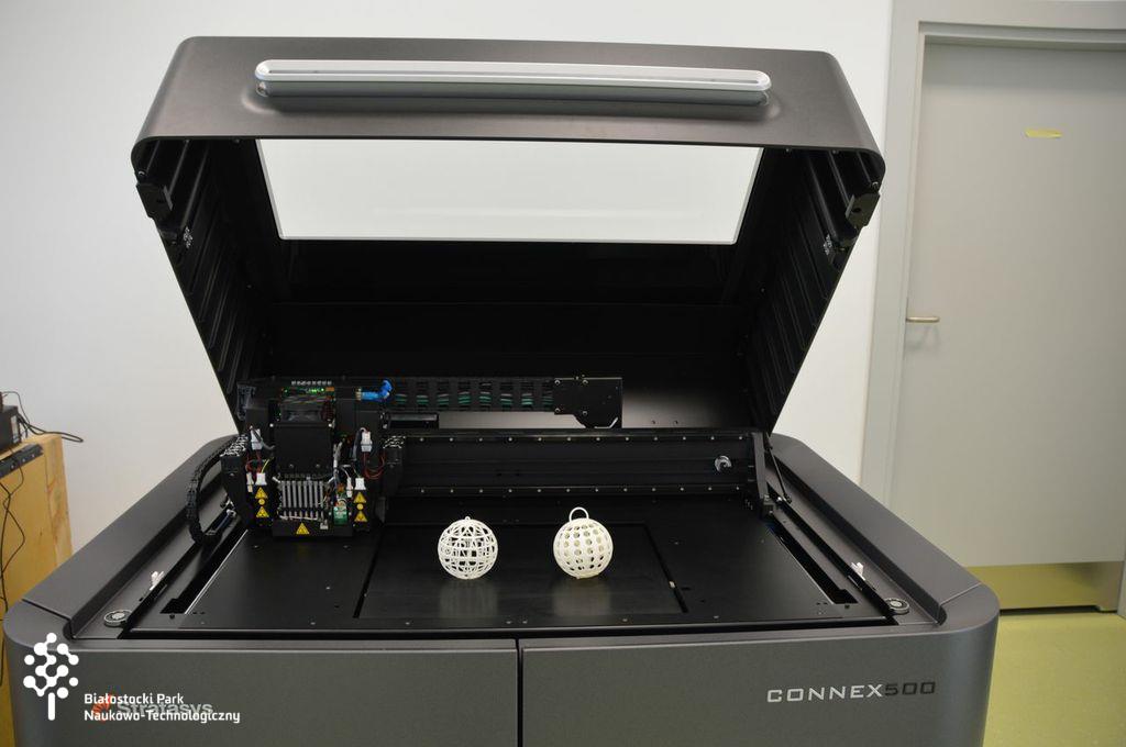 - Drukarka Objet Connex 500, wykorzystująca zaawansowaną technologię PolyJet umożliwia wykonanie detali o wysokiej dokładności i jakości powierzchni z szerokiego zakresu stosowanych materiałów żywicznych w jednej budowie, w tym sztywnych, przeźroczystych czy elastycznych.