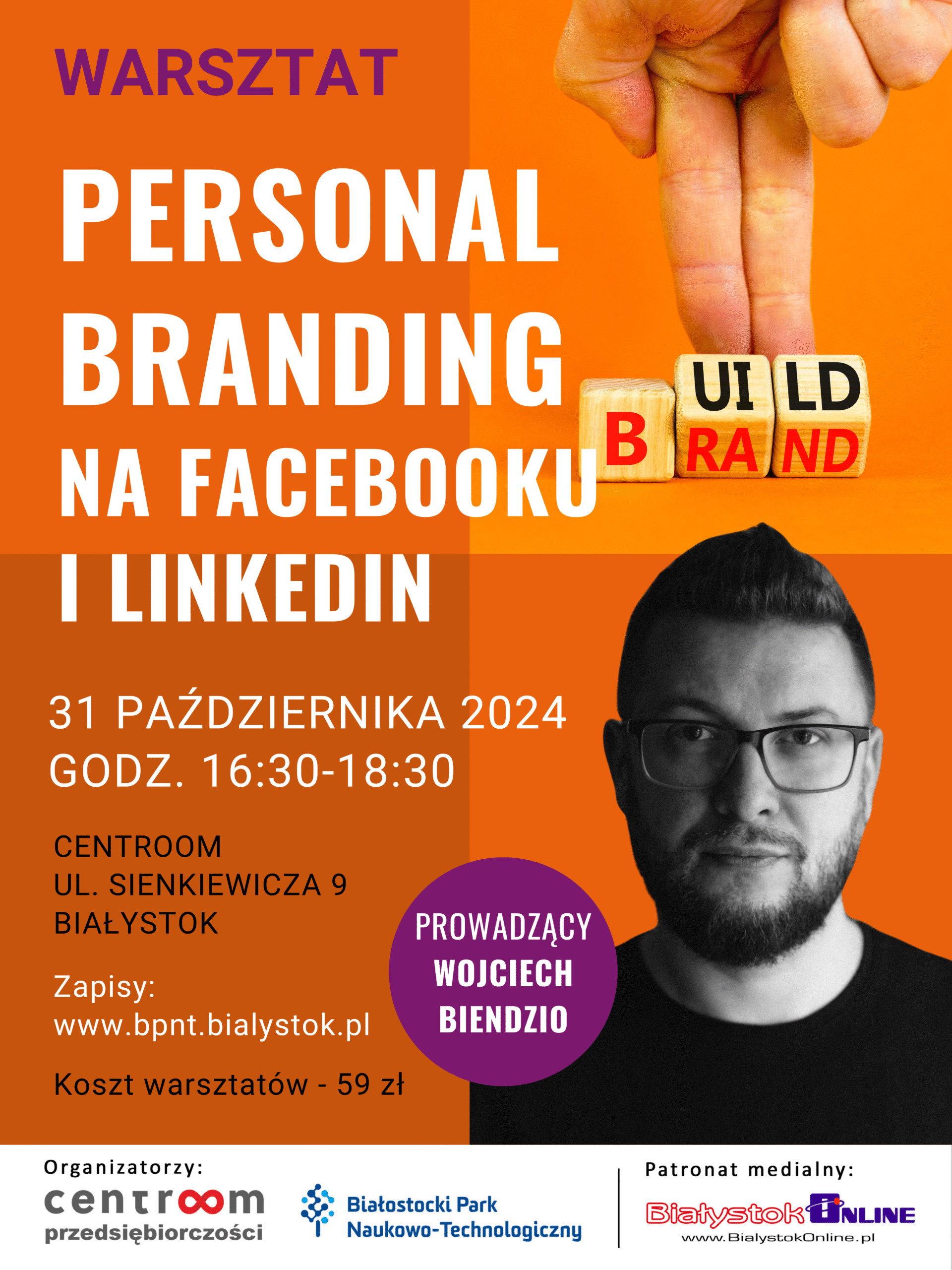 Startujemy z jesienną edycją Centroom Przedsiębiorczości! Ruszyły zapisy na warsztat poświęcony budowaniu marki osobistej: „Personal Branding na Facebooku i LinkedIn”, który poprowadzi Wojciech Biendzio, właściciel agencji social mediowej Bien Agencja. Spotkanie odbędzie się w biurze coworkingowym Centroom 31 października 2024 roku w godzinach 16.30-18.30.