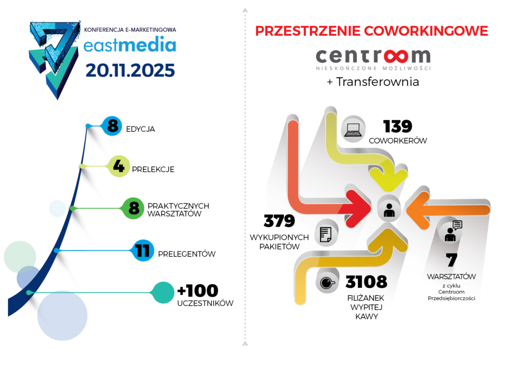 W 2025 roku odbyła się 8. edycja konferencji e-marketingowej EastMedia, obejmująca 4 prelekcje i 8 praktycznych warsztatów. W wydarzeniu wzięło udział 11 prelegentów oraz ponad 100 uczestników.