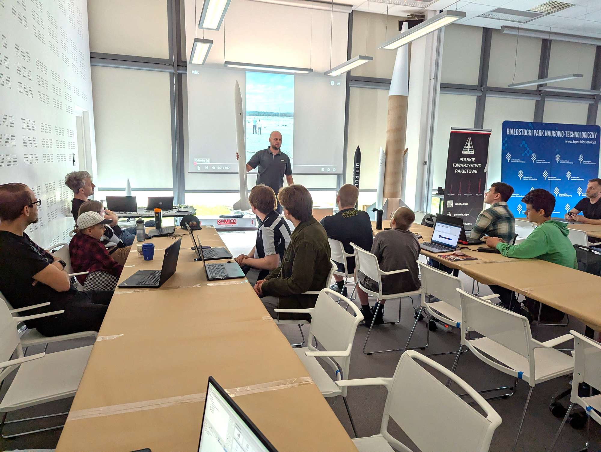 Wydarzenie rozpoczęło się od panelu projektowego, podczas którego uczestnicy poznawali zasady projektowania modeli rakiet w darmowym programie OpenRocket. Tuż po nim rozpoczęły się warsztaty praktyczne, w trakcie których powstało kilkanaście modeli – zarówno prostych SCOUT-ów, idealnych dla początkujących, jak i bardziej zaawansowanych rakiet typu PATRIOT.