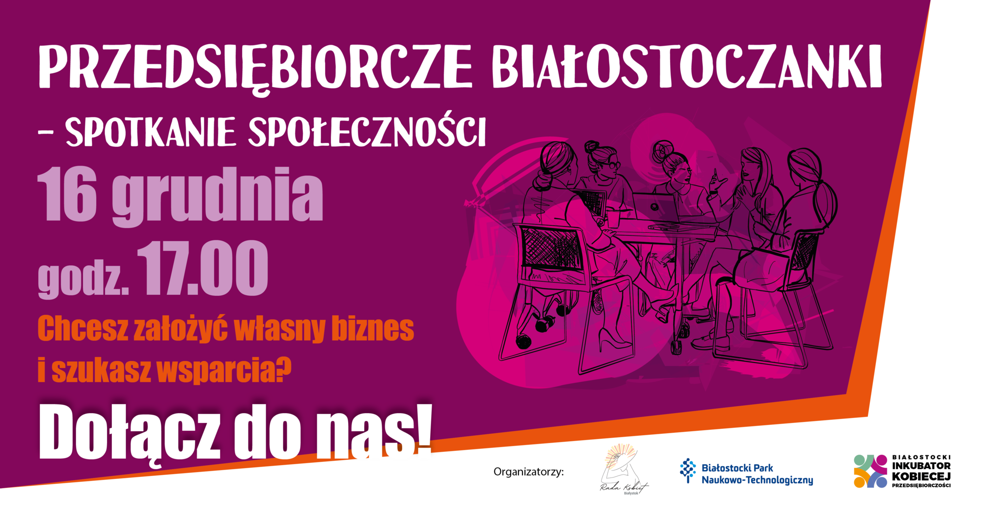 Zapraszamy Cię na spotkanie społeczności Przedsiębiorczych Białostoczanek, które odbędzie się 16 grudnia 2025 r. w godz. 17:00 – 19:00 w Białostockim Parku Naukowo-Technologicznym.
