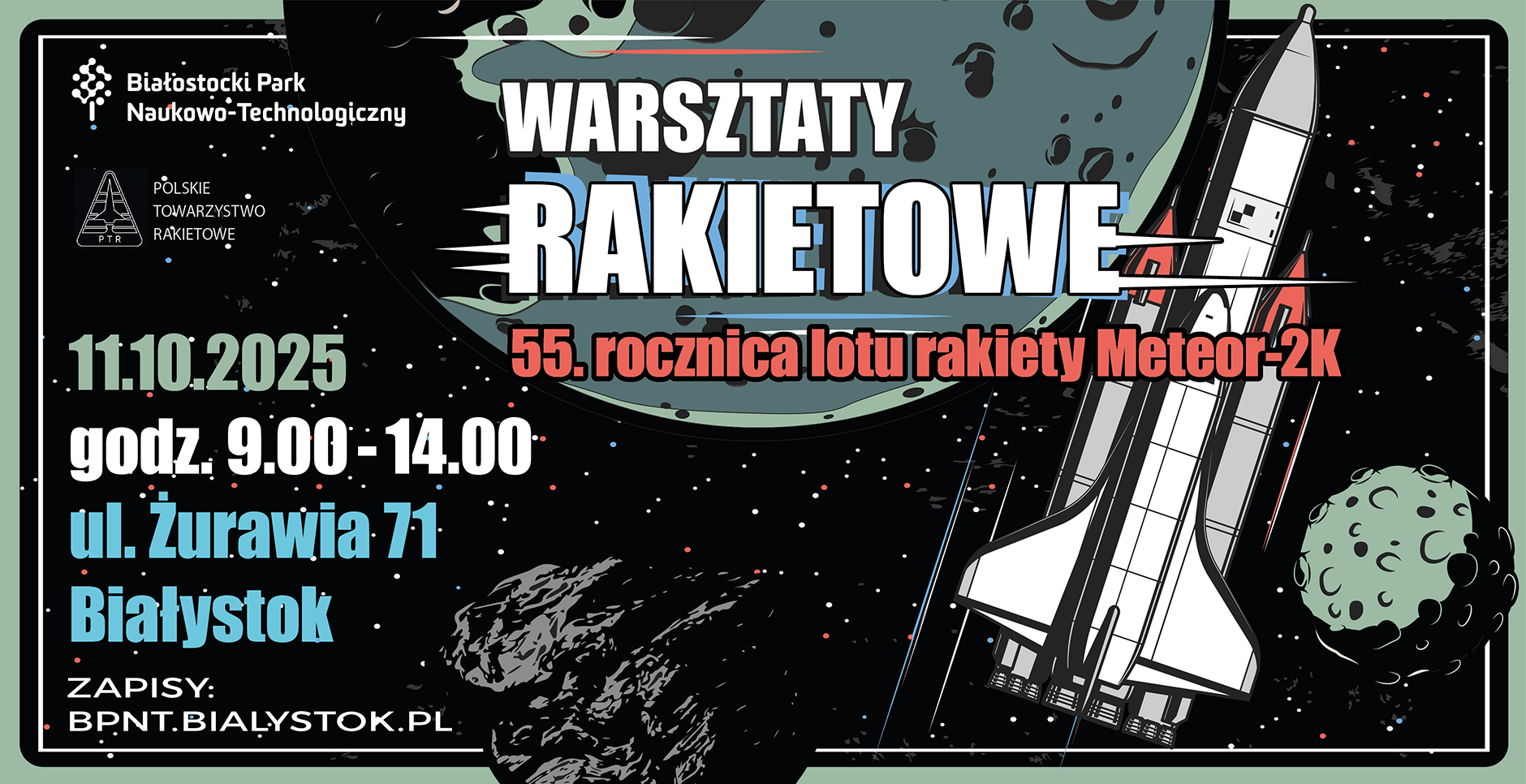 W sobotę 11 października 2025 r. zapraszamy do udziału w wyjątkowych warsztatach budowy 70-centymetrowych modeli kosmicznych. Wydarzenie to nawiązuje do 55. rocznicy historycznego lotu rakiety Meteor-2K z 7 października 1970 r. – pierwszej polskiej rakiety, która przekroczyła umowną granicę kosmosu.