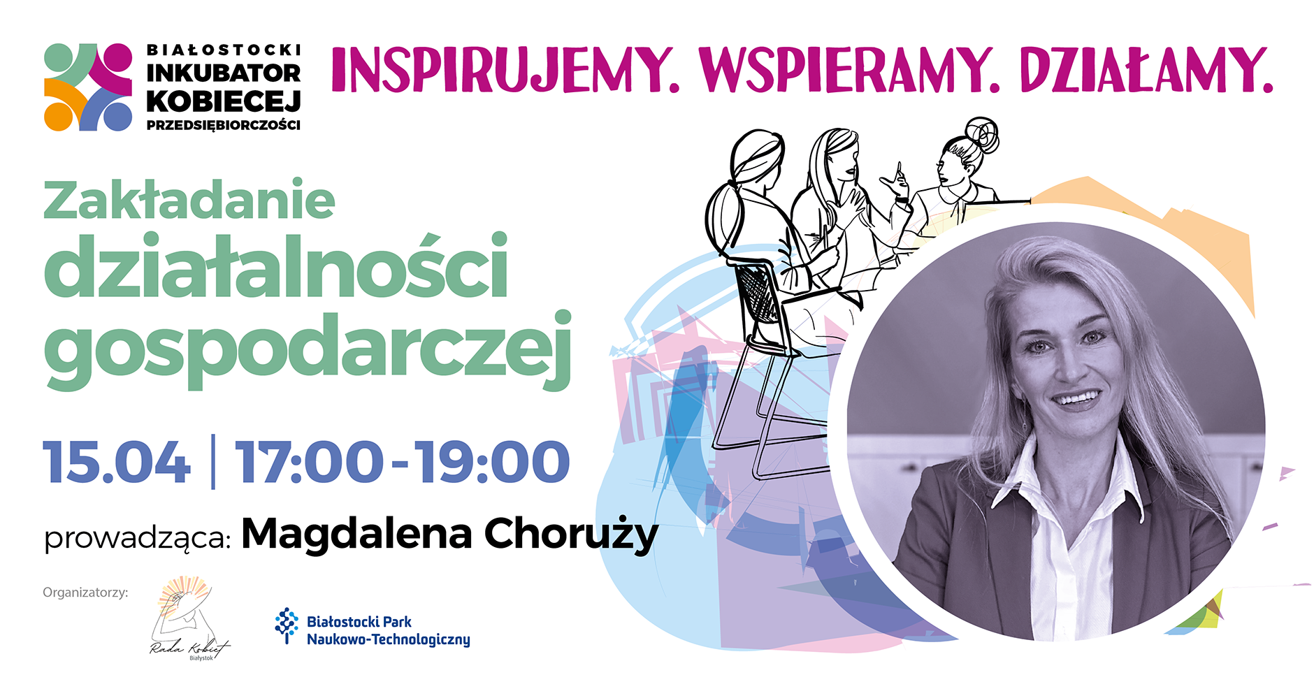 Zakładanie działalności gospodarczej krok po kroku to drugie spotkanie Etapu II programu „Białostocki Inkubator Kobiecej Przedsiębiorczości”, które poprowadzi adwokat Magdalena Choruży.